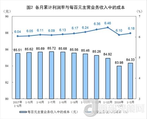 1-3月份,規(guī)模以上工業(yè)企業(yè)實(shí)現(xiàn)主營業(yè)務(wù)收入25.2萬億元,同比增長9.6%;發(fā)生主營業(yè)務(wù)成本21.2萬億元,增長9.4%;主營業(yè)務(wù)收入利潤率為6.18%,同比提高0.11個百分點(diǎn)。
