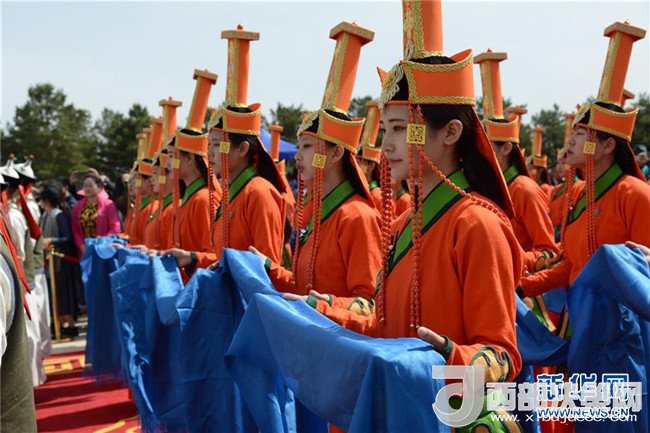5月6日,在成吉思汗陵,身著盛裝的姑娘手捧哈達(dá)進(jìn)行祭祀活動(dòng)。新華社記者 鄒予 攝