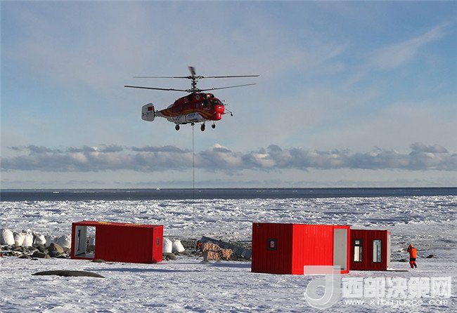 船載“雪鷹12”Ka——32直升機(jī)將物資吊運(yùn)至恩克斯堡島新建站區(qū)(2017年12月9日攝)。新華社記者 白國(guó)龍 攝