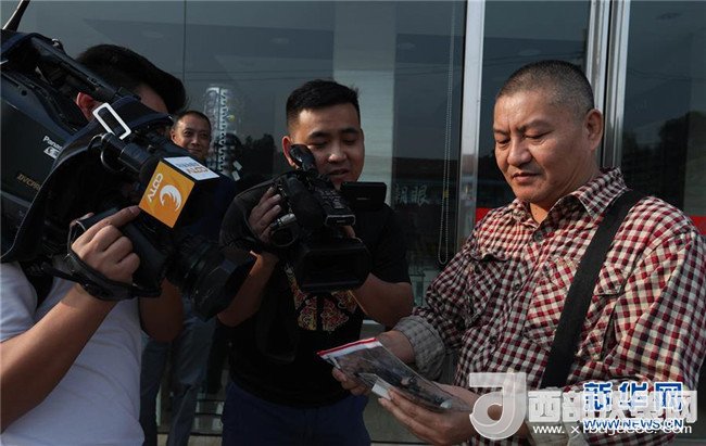 6月7日,梁實(右一)在2018年高考成都通錦中學(xué)考點,接受媒體采訪。新華社記者 江宏景攝
