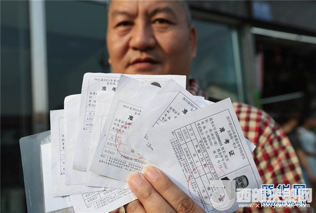 6月7日,梁實在展示歷年參加高考的部分準(zhǔn)考證。新華社記者 江宏景攝