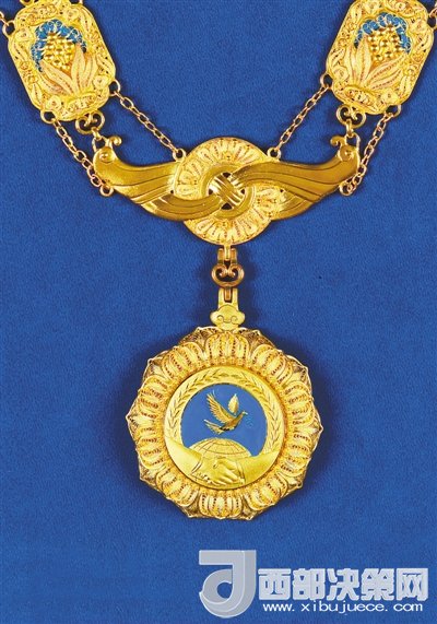 根據(jù)《中華人民共和國(guó)國(guó)家勛章和國(guó)家榮譽(yù)稱號(hào)法》,國(guó)家設(shè)立中華人民共和國(guó)“友誼勛章”。中華人民共和國(guó)“友誼勛章”章體以金色、藍(lán)色為主色調(diào),采用和平鴿、地球、握手、荷花等元素,章鏈采用中國(guó)結(jié)、萬(wàn)年青、牡丹花、玉璧、蘭草等元素,整體采用花絲鑲嵌、掐絲琺瑯等傳統(tǒng)工藝手工制作。圖為中華人民共和國(guó)“友誼勛章”。新華社發(fā)