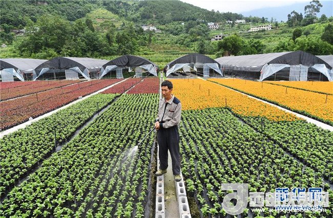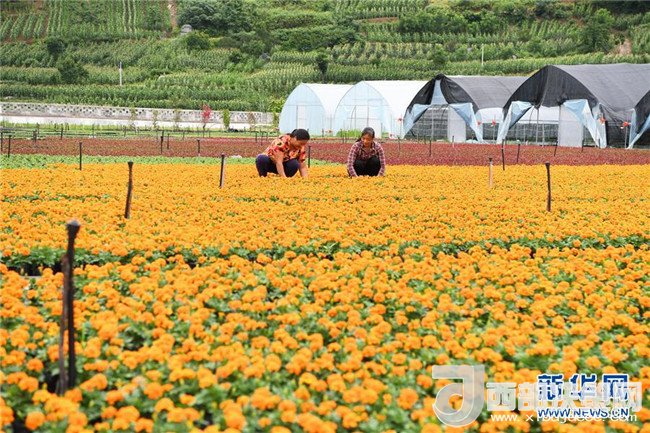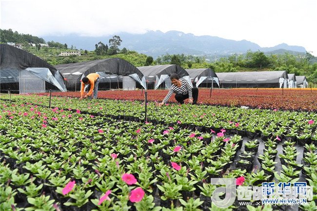 6月12日,艷山紅村村民在村里的花卉基地勞作。近年來,重慶市武隆區(qū)羊角鎮(zhèn)艷山紅村探索“公司+村集體+農(nóng)戶+基地”的經(jīng)營模式,發(fā)展花卉種植等產(chǎn)業(yè),實現(xiàn)了“農(nóng)村資源變資產(chǎn)、資金變股金、農(nóng)民變股東”,幫助當(dāng)?shù)剞r(nóng)民通過保底分紅、效益分紅、務(wù)工收益等方式脫貧增收。新華社記者王全超攝