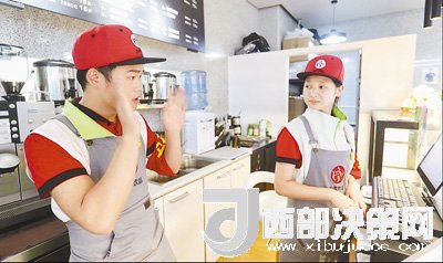 6月21日,在貴陽(yáng)市貴陽(yáng)北站一家名為“無(wú)聲飲品”的飲料店內(nèi),服務(wù)員在用手語(yǔ)相互交流。從點(diǎn)單到付款,再到制作交遞,店員和顧客間都通過(guò)手語(yǔ)或手寫(xiě)紙條進(jìn)行交流。這家小店是貴陽(yáng)市盲聾啞學(xué)校的校企合作項(xiàng)目,店內(nèi)所有服務(wù)人員均是聾啞學(xué)生。截至目前,貴陽(yáng)已有4家“無(wú)聲飲品”店,為近50名聾啞學(xué)生提供了實(shí)習(xí)和就業(yè)平臺(tái)。歐東衢攝