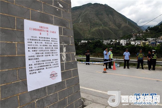 7月15日,在舟曲縣南峪鄉(xiāng),通往險情點的道路被臨時交通管制。