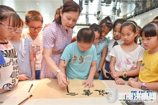 當(dāng)日,在福建省少年兒童圖書館,由省級書法名師領(lǐng)銜的公益書法夏令營正式開營。80名有一定書法基礎(chǔ)的小學(xué)生將在各校書法校本教學(xué)的基礎(chǔ)上,免費接受名師書法指導(dǎo)。新華社記者 宋為偉 攝