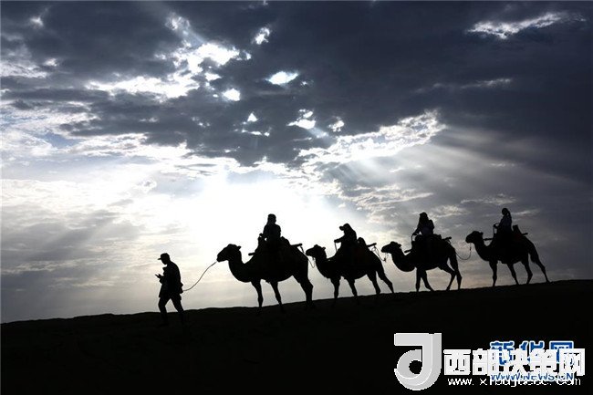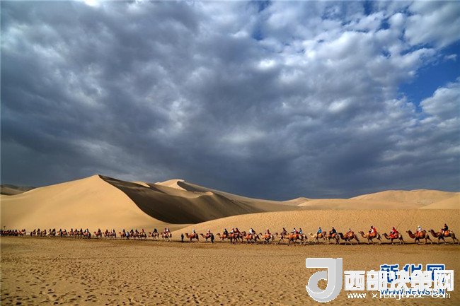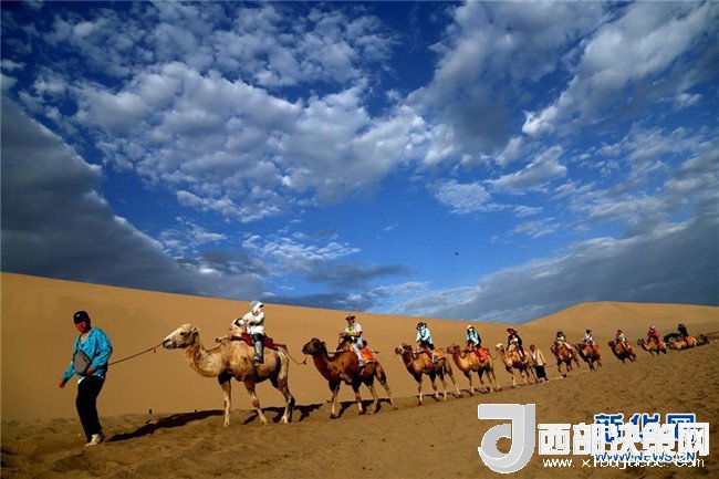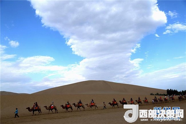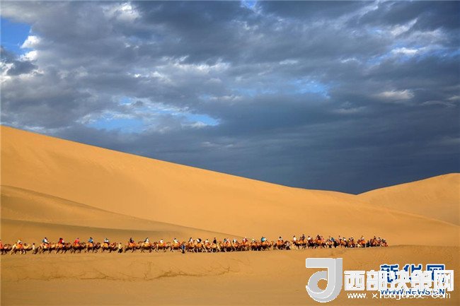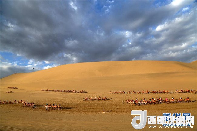 當(dāng)日,甘肅省敦煌市鳴沙山月牙泉景區(qū)云景如畫(huà),美不勝收,游客徜徉其中,盡情欣賞大漠風(fēng)光。 新華社發(fā)(張曉亮 攝)