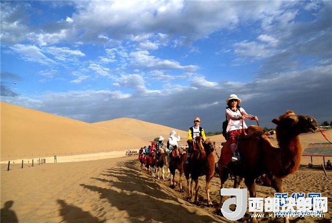 7月29日,游客在甘肅省敦煌市鳴沙山月牙泉景區(qū)參觀游覽。