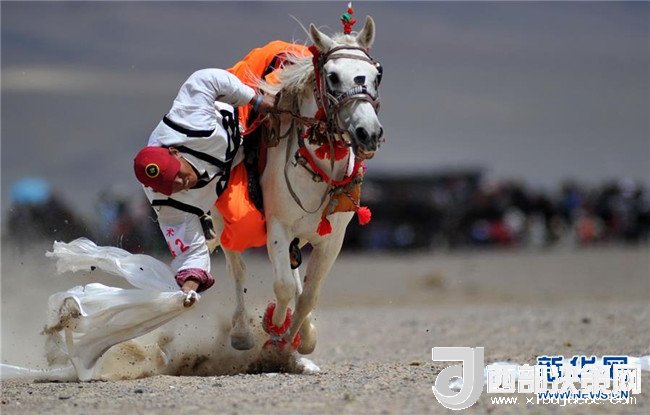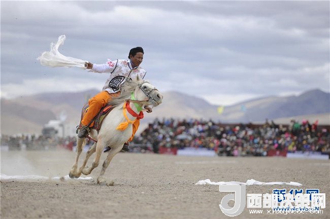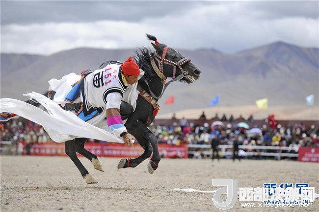 當(dāng)日,西藏阿里地區(qū)在獅泉河鎮(zhèn)舉行賽馬競技大賽,比賽項目有騎馬拾哈達(dá)、撿茶磚、騎馬射箭、馬術(shù)表演等,共有150名農(nóng)牧民選手參加比賽,吸引了2萬余名觀眾前來觀看。新華社記者張汝鋒攝