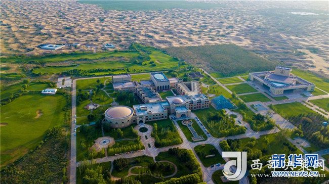 這是位于庫布其沙漠中的億利集團阿木古龍甘草健康產業(yè)園(7月11日無人機拍攝)。 新華社記者 彭源 攝