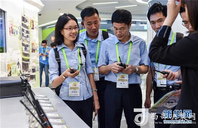 參加“國家發(fā)展戰(zhàn)略與香港青年機遇”參訪團的香港青年代表在深圳海能達通信股份有限公司總部展廳參觀(2018年6月26日攝)。新華社記者毛思倩攝