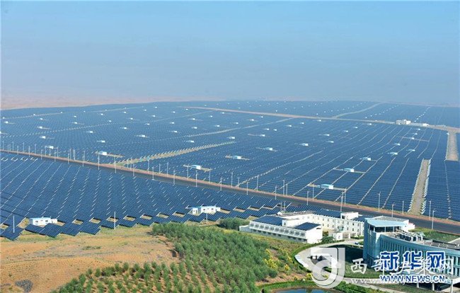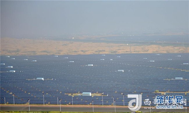 8月22日拍攝的中衛(wèi)市沙漠光伏產業(yè)園。新華社記者劉軍喜攝