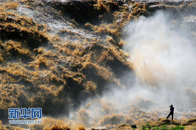 入秋以來(lái),受上游降雨影響,陜西宜川黃河壺口瀑布水量大增,出現(xiàn)“山飛海立”、“旱天鳴雷”的自然景觀,引來(lái)眾多游客和攝影愛(ài)好者。(趙潔)