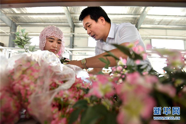 潘文賢(右)在寧夏固原市隆德縣隆德人造花工藝有限公司向員工介紹人造花制作技術(shù)(8月29日攝)。來自福建南安市的潘文賢2011年在隆德縣創(chuàng)辦隆德人造花工藝有限公司,成為隆德縣第一家集研發(fā)、生產(chǎn)和銷售于一體的勞動密集型出口創(chuàng)匯企業(yè),產(chǎn)品遠(yuǎn)銷歐美及東南亞等國家和地區(qū)。截至2017年底,已成功打造隆德縣前莊村、紅崖社區(qū)等5個扶貧車間,幫助150人穩(wěn)定就業(yè)、218戶外加工戶靈活增收,帶動300多個建檔立卡戶增收脫貧。 新華社記者郭緒雷攝