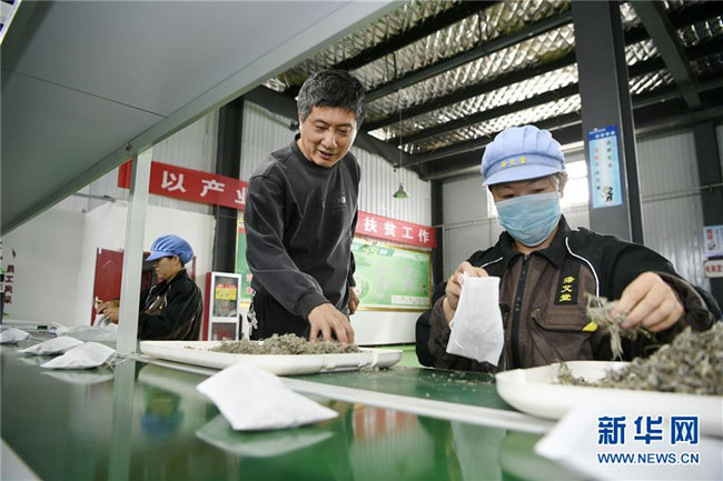 林玉清(中)在寧夏固原市西吉縣寧夏澤艾堂生物科技有限公司向工人講解艾草包裝注意事項(8月30日攝)。來自福建莆田的林玉清2017年3月在西吉縣成立寧夏澤艾堂生物科技有限公司,依托西吉縣優(yōu)質(zhì)的艾草種植條件,采用“公司+合作社+農(nóng)戶”的訂單農(nóng)業(yè)合作模式,與吉強(qiáng)、新營等鄉(xiāng)鎮(zhèn)種植專業(yè)合作社合作建成艾草種植基地11個、推廣種植艾草6000畝,為當(dāng)?shù)厝罕娒撠氈赂讳伨托侣纷印?新華社記者王鵬攝