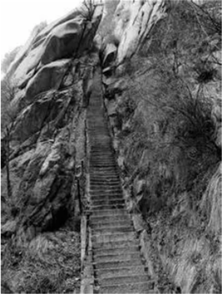 千尺幢是登華山的一段著名的險(xiǎn)道,開鑿在懸崖峭壁上,直立千仞,氣象森然,被許多人視為畏途。像千尺幢這樣的登山道路,只有華山才有,華山也因?yàn)橛辛诉@樣的路才有了“奇”“險(xiǎn)”的景色,奇與險(xiǎn)成為華山特別突出的景觀特色。其它山岳也有險(xiǎn)境,但都被掩埋在了雄或者秀等特色中,不像華山的險(xiǎn)這般令人驚心動(dòng)魄,這般讓人心潮澎湃。