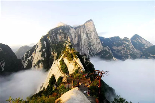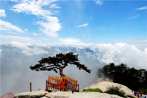 漫步于華山的峰嶺山道,到處可以看到許多與云有關(guān)的景點,也能從與云有關(guān)的神奇?zhèn)髡f中,感受到宛若仙境的景象。五云峰是華山諸峰中最富有詩情畫意的一座峰嶺。每逢深秋季節(jié),松翠楓赤,山花耀目,在太陽光的照射下,猶如五色彩云,霓裳般妝扮了山的容顏。在這里,松楓山花都成了五彩云霧。而位于云臺峰以北的白云峰,山峰的若石就如白云一樣漂浮在空中。傳說漢元帝劉爽的女兒南陽公主為避離亂之苦,遠離塵露,就到白云峰隱居修行,修煉功成,駕鶴乘云而去。