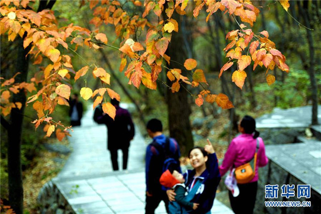 10月6日,游客在位于太行山東麓的靈壽縣五岳寨自然風景區(qū)內游覽。新華社發(fā)(陳其保 攝)
