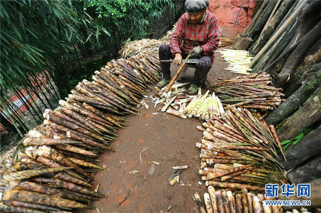 10月14日,在貴州赤水市寶源鄉(xiāng)聯(lián)華村,竹農(nóng)加工剛?cè)さ孽r筍。金秋時(shí)節(jié),貴州省赤水市寶源、兩河口、丙安等鄉(xiāng)鎮(zhèn)種植的5萬余畝大竹筍迎來收獲季。當(dāng)?shù)刂褶r(nóng)加緊采挖竹筍,進(jìn)行加工后外銷。素有“中國竹子之鄉(xiāng)”的赤水市,現(xiàn)有竹林面積132.8萬畝。竹產(chǎn)業(yè)已經(jīng)成為當(dāng)?shù)孛撠氃鍪盏闹饕乐弧?(王長育 攝)