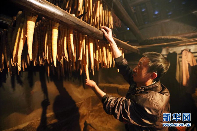 10月14日,在貴州赤水市寶源鄉(xiāng)聯(lián)華村,竹農(nóng)翻看烘烤的竹筍。金秋時(shí)節(jié),貴州省赤水市寶源、兩河口、丙安等鄉(xiāng)鎮(zhèn)種植的5萬余畝大竹筍迎來收獲季。當(dāng)?shù)刂褶r(nóng)加緊采挖竹筍,進(jìn)行加工后外銷。素有“中國竹子之鄉(xiāng)”的赤水市,現(xiàn)有竹林面積132.8萬畝。竹產(chǎn)業(yè)已經(jīng)成為當(dāng)?shù)孛撠氃鍪盏闹饕乐弧?(王長育 攝)