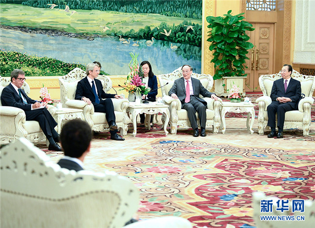 國(guó)家副主席王岐山15日在人民大會(huì)堂會(huì)見(jiàn)出席第六屆中法青年領(lǐng)導(dǎo)者論壇的雙方代表。