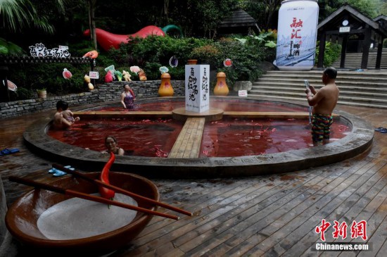 重慶現(xiàn)巨型“麻辣火鍋”溫泉