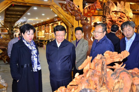 張建龍首先來到烏馬河木藝文化小鎮(zhèn),詳細(xì)了解小鎮(zhèn)規(guī)劃布局和建設(shè)發(fā)展情況,通過觀看小鎮(zhèn)宣傳片,現(xiàn)場(chǎng)參觀小鎮(zhèn)服務(wù)中心、木藝產(chǎn)品店,對(duì)伊春市木藝文化產(chǎn)業(yè)發(fā)展表示高度肯定。他指出要繼續(xù)突出原生態(tài)特色,加強(qiáng)創(chuàng)新創(chuàng)意設(shè)計(jì),滿足人民群眾對(duì)林業(yè)產(chǎn)品多樣化的需求。走進(jìn)美江木藝公司,就如同走進(jìn)了藝術(shù)的殿堂,制作精良的木拼畫、惟妙惟肖的根雕、造型別致的樹榴工藝產(chǎn)品,一件件精美的木制工藝品,令人目不暇接。張建龍仔細(xì)觀賞這些木制產(chǎn)品,向企業(yè)負(fù)責(zé)同志詳細(xì)了解產(chǎn)品創(chuàng)意設(shè)計(jì)和市場(chǎng)銷售等情況。勉勵(lì)企業(yè)要再接再厲,繼續(xù)做好產(chǎn)品研發(fā),全面提升工藝水平,創(chuàng)造出更多更好的生態(tài)特色產(chǎn)品,進(jìn)一步增強(qiáng)林業(yè)發(fā)展的活力與動(dòng)力。