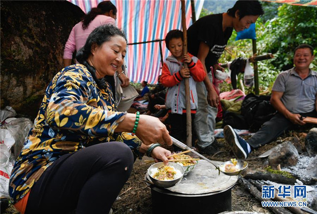 10月22日,在西藏林芝市墨脫縣墨脫鎮(zhèn)米日村臨時救災(zāi)安置點,人們準(zhǔn)備吃飯。 受雅魯藏布江堰塞湖影響的群眾被轉(zhuǎn)移到臨時救災(zāi)安置點,這里秩序井然,群眾基本生活得到保障。10月17日,雅魯藏布江米林縣加拉村附近發(fā)生山體滑坡,堵塞河道,形成堰塞湖。 新華社記者 劉東君 攝