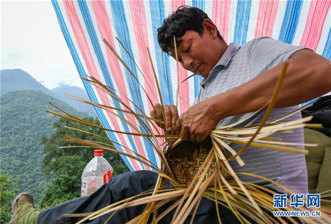 10月22日,在西藏林芝市墨脫縣墨脫鎮(zhèn)米日村臨時救災(zāi)安置點,一名男子在制作竹編。 受雅魯藏布江堰塞湖影響的群眾被轉(zhuǎn)移到臨時救災(zāi)安置點,這里秩序井然,群眾基本生活得到保障。10月17日,雅魯藏布江米林縣加拉村附近發(fā)生山體滑坡,堵塞河道,形成堰塞湖。 新華社記者 劉東君 攝