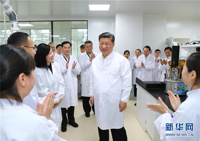10月22日至25日,中共中央總書記、國家主席、中央軍委主席習(xí)近平在廣東考察。這是10月22日下午,習(xí)近平考察珠海橫琴新區(qū)粵澳合作中醫(yī)藥科技產(chǎn)業(yè)園。 新華社記者謝環(huán)馳攝