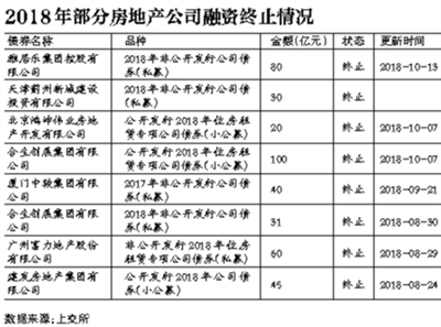 據(jù)記者不完全統(tǒng)計,2018年下半年以來,已經(jīng)至少有20起涉房融資計劃中止/終止,涉及融資規(guī)模超過650億元。業(yè)內(nèi)人預計,短時間內(nèi),房企融資環(huán)境放寬的可能性很小。