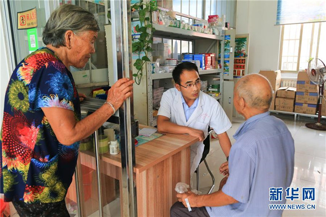在山東費縣朱田鎮(zhèn)崔家溝社區(qū),當(dāng)?shù)卮迕裨谛l(wèi)生室就診(8月22日攝)。崔家溝村是遠(yuǎn)近聞名的“光棍村”“貧困村中的貧困村”。2016年3月,崔家溝村在中央異地搬遷政策的扶持下,實現(xiàn)了整體搬遷,1600多口人搬到了鎮(zhèn)駐地。從此,昔日的“光棍村”,一躍進入朱田鎮(zhèn)富裕村行列。新華社記者 王南 攝