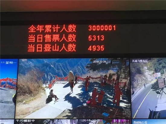 截止2018年10月29 日上午11時43分,華山景區(qū)購票人數(shù)突破300萬人次,與去年同期相比增長60萬人次,增長率25%,創(chuàng)歷史新高。取得這樣喜人的成績,是華旅集團引領(lǐng)企業(yè)發(fā)展新航向、上下求索的碩果,是票務(wù)服務(wù)中心及兄弟單位密切配合,扎實工作,共同努力的結(jié)果,是干部職工上下一心,不辭辛勞,真抓實干的效果,是海內(nèi)外游客對華山景區(qū)優(yōu)美景色,優(yōu)質(zhì)服務(wù)認可的成果。