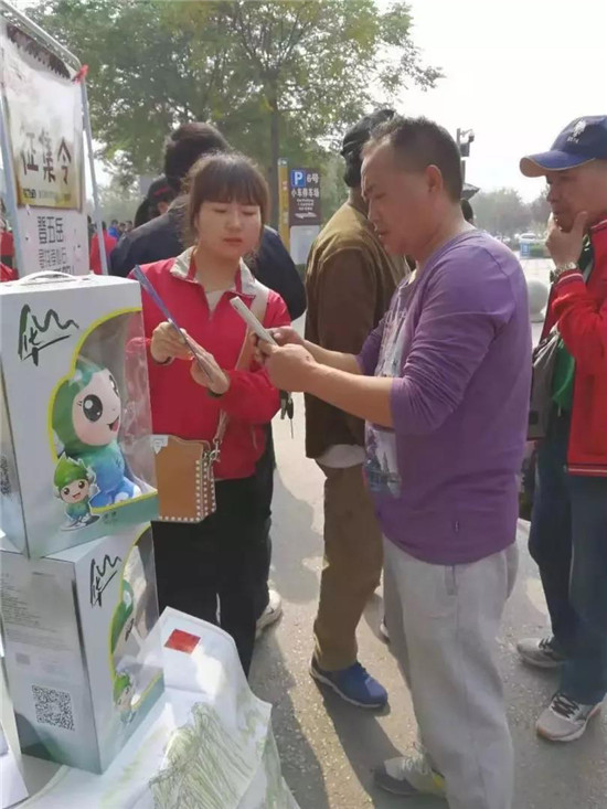 營銷中心工作人員耐心細(xì)致地幫助游客參與活動