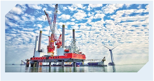 圖為建設(shè)中的福建福清興化灣30萬千瓦海上風(fēng)電場一期工程。 王軼辰攝