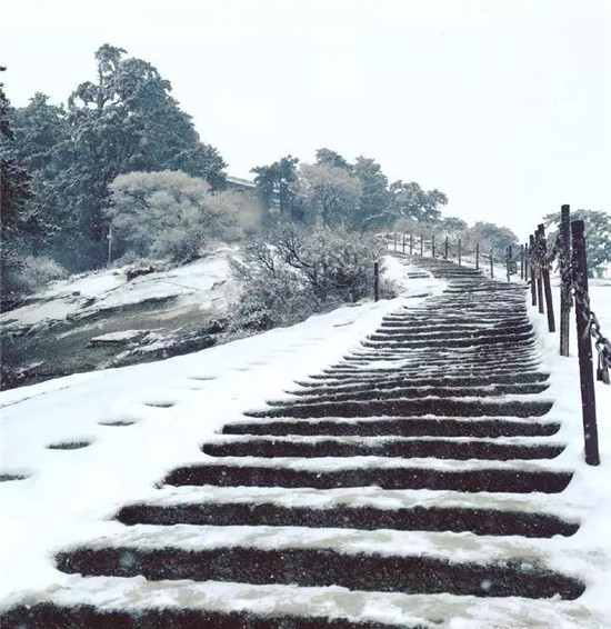 走進(jìn)華山,你會(huì)發(fā)現(xiàn),下過雪的華山,好似山水畫師筆下一副徐徐勾染出的華山畫卷,層次分明、剛?cè)嵯酀?jì)。