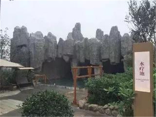 28個湯池,各具特色,湯池水量充沛,出水溫度55℃,為弱酸性水,富含氟、碘、鍶、偏硼酸等對人體健康有益的微量元素和礦物質(zhì),具有很高的理療價值。