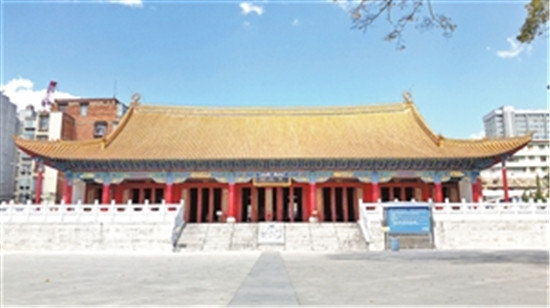 經(jīng)過一年半的施工,昆明文廟恢復(fù)性修建項(xiàng)目一期工程于去年7月完工。此次修復(fù),昆明市規(guī)劃局及相關(guān)部門以歷史文獻(xiàn)和老照片為主要修復(fù)依據(jù),并結(jié)合明清時(shí)期地方城市廟學(xué)建筑的基本規(guī)制,以及現(xiàn)有建筑遺存,對清代云南府學(xué)進(jìn)行復(fù)原研究設(shè)計(jì)。提出修復(fù)設(shè)計(jì)思路將保留云南府學(xué)中路的欞星門與泮池,恢復(fù)中軸線上的大成門、大成殿與啟圣祠,以及相關(guān)配殿,如祭器庫、樂器庫,東西廡等。并對府學(xué)的東路改造,保留桂香樓與明倫堂兩座建筑,穿插設(shè)置園林小品建筑,形成數(shù)座各有特點(diǎn)的小型古典園林,增加建筑群的文化與休閑氛圍,并將東路與西路建筑結(jié)合成為有機(jī)整體。在重新開放的文廟里,市民能發(fā)現(xiàn)從地下挖出的柱礎(chǔ)基石支撐起大成殿新建立柱;能從在地下沉睡了上百年的石碑上讀到更多關(guān)于文廟的歷史。至此,昆明祭孔、尊孔,傳承弘揚(yáng)優(yōu)秀傳統(tǒng)文化再添一處重要場所。