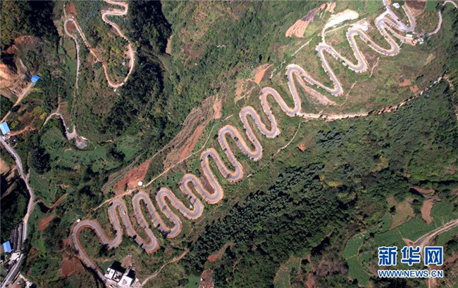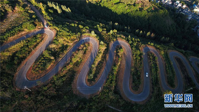 云南宜良“68道拐”位于云南省昆明市宜良縣,是宜良縣城通往靖安哨村的盤(pán)山公路。公路依山梁而修建,蜿蜒曲折,6.3公里的路程共有68道彎。 新華社記者 藺以光 攝