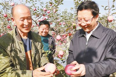 近年來(lái),延安蘋(píng)果產(chǎn)業(yè)不斷壯大。在寶塔區(qū)廟溝村,薛占海腳一踏進(jìn)果農(nóng)朱懷明的蘋(píng)果園就問(wèn):“老朱,你今年蘋(píng)果賣(mài)了多少錢(qián)?”