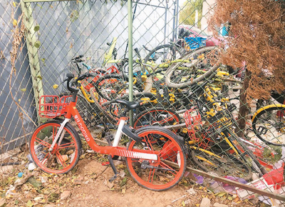 圖為廢棄的共享單車。本報記者 彭訓文攝 |