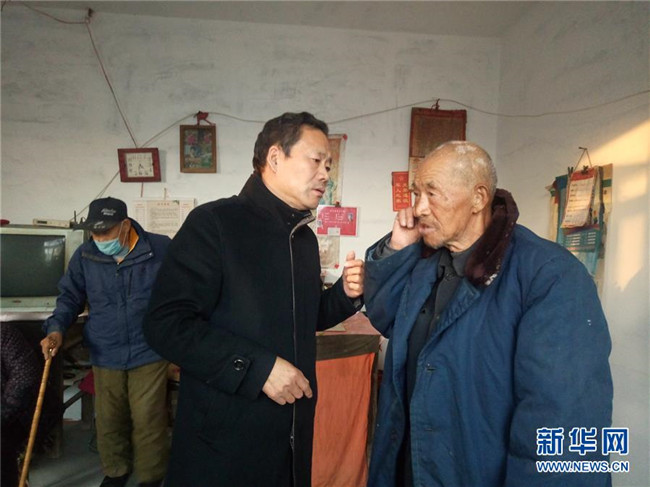 河北新河縣申家莊村村支書史鳳水(右二)在看望村民(2018年11月19日攝)。 新華社發(fā)