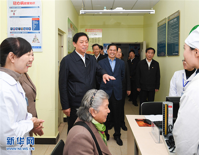 11月28日至12月1日,中共中央政治局常委、全國(guó)人大常委會(huì)委員長(zhǎng)栗戰(zhàn)書在云南就制定基本醫(yī)療衛(wèi)生與健康促進(jìn)法開展立法調(diào)研。這是11月29日,栗戰(zhàn)書在昆明市西山區(qū)前衛(wèi)社區(qū)衛(wèi)生服務(wù)中心,與醫(yī)務(wù)人員和就診患者親切交談。 新華社記者 申宏 攝