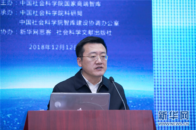 中國社會科學(xué)院科研局局長、院智庫建設(shè)協(xié)調(diào)辦公室主任馬援致辭。肖斌 攝