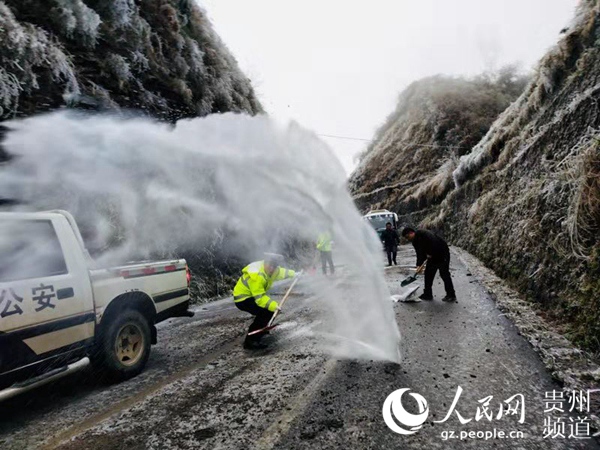 為防止凝凍帶來(lái)的各種隱患,保障司乘人員的生命財(cái)產(chǎn)安全,貴州各部門立即啟動(dòng)緊急預(yù)案,迅速行動(dòng),不僅加大對(duì)各道路的巡邏管控,還連夜組織養(yǎng)護(hù)部門對(duì)轄區(qū)凝凍路段及易凝凍路段進(jìn)行拋撒融雪劑。