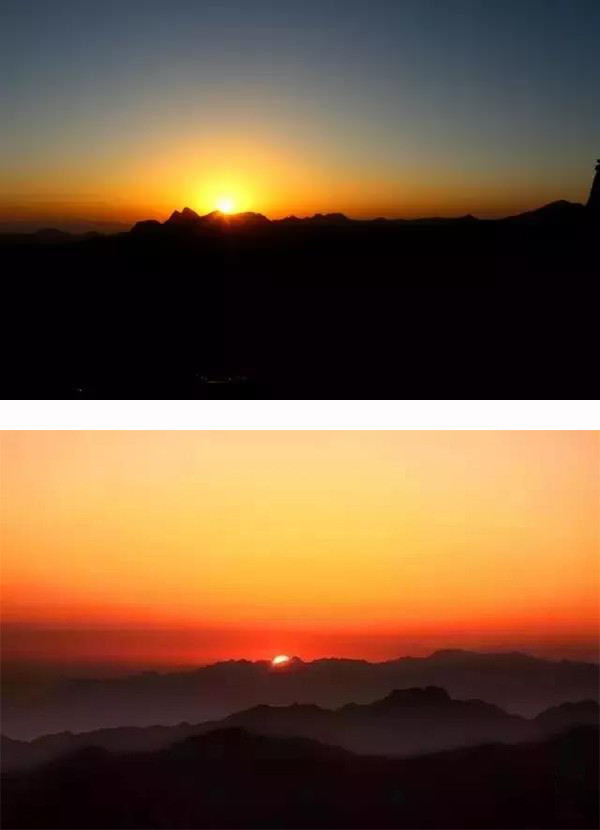 ??!青春的烈焰在升騰;新的生靈在震撼;歲月的車輪滾滾向前……該存在的難消失,該消失的存在難!天和地分了家,光明戰(zhàn)勝了黑暗。黑白交替,陰陽輪換!宇宙徹悟,氣象萬千。野草滾露,空氣新鮮;松濤簸香,山花爛漫;潮涌般的游客個(gè)個(gè)舒坦,猶如飽乳的嬰兒笑得甜甜。零晨三點(diǎn),漆黑一團(tuán)。熙熙攘攘的游客擁向山路彎彎,歡聲笑語、呼喚吶喊、手電筒的光柱密密麻麻。萬萬千千織成縷縷金練,宛如“金龍盤山”!朝陽峰上熱鬧非凡。不是拜佛求仙,卻耐心等待!企盼一個(gè)輝煌時(shí)刻,猶如新生命噴紅分娩。一飽華山日出的壯觀!