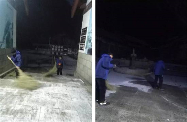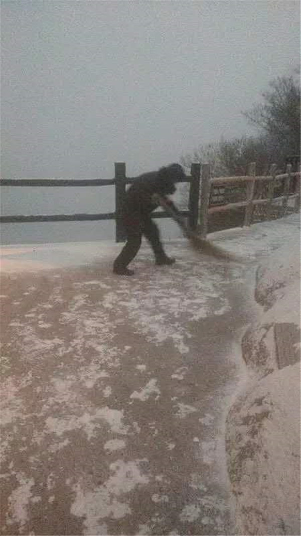 天還沒(méi)亮,主峰區(qū)的工作人員,分路段開始清掃積雪。
