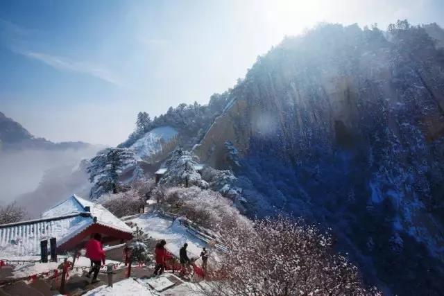 銀裝素裹的華山格外妖嬈,難得一見的華山雪景——美麗的霧凇給樹木、巖石、屋舍都披上一層晶瑩的薄衣,尤其在大雪覆蓋后,山景變成一幅曼妙的白色圖畫,峰上的樹木和古藤被透明的冰層包裹,極富魅力。