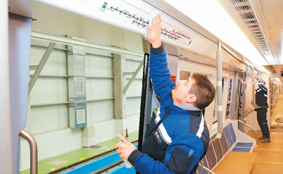 隨著“一帶一路”建設深入推進,中國與土耳其之間的經(jīng)貿(mào)關(guān)系日益密切,以中國中車為代表的軌道交通企業(yè)在土耳其市場頻傳佳訊。進入土耳其市場近十年來,中國中車走出一條從成品列車出口到本地化制造的發(fā)展之路,是中國企業(yè)在海外市場從“走出去”到“融進去”的一個縮影。圖為2018年12月12日,在土耳其安卡拉的株機-MNG公司,一名員工在新生產(chǎn)的地鐵車廂內(nèi)工作。新華社記者秦彥洋攝