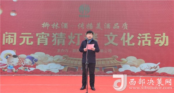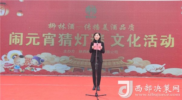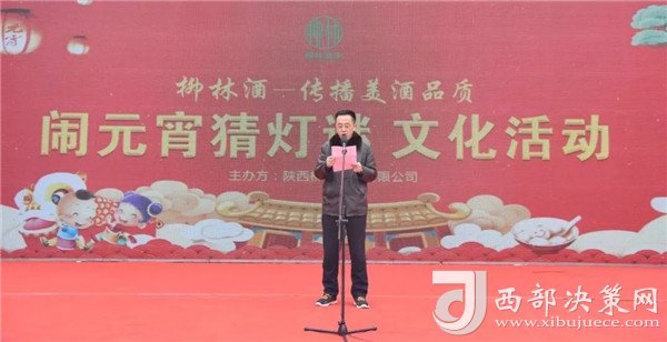 陜西柳林酒業(yè)有限公司副總經(jīng)理周峰發(fā)表講話并向鳳翔父老送上新春祝福和節(jié)日的問候。“三陽開國泰,美哉柳林酒。今天是正月十五,首先我代表柳林酒業(yè)董事長付小銅先生、總經(jīng)理柳林先生及全體員工給現(xiàn)場的父老鄉(xiāng)親、朋友們拜個晚年,祝各位家庭好、事業(yè)好、身體好心情好、運(yùn)氣好、福氣好、財氣好、愛情好、朋友好、新的一年一切都好!柳林酒業(yè)主辦的以傳播柳林美酒品質(zhì)為主題的“鬧元宵有獎猜燈謎文化活動”,在此,對前來的各位父老鄉(xiāng)親,各界朋友表示衷心的感謝。本次猜謎活動獎品總價值15萬元,共設(shè)1000條謎語,只要猜中謎底,關(guān)注“柳林酒業(yè)”,即可獲得獎品?,F(xiàn)場更有國家級評酒大師親臨現(xiàn)場,品柳林美酒,共同傳播美酒文化和歌舞表演環(huán)節(jié),相信大家一定會不虛此行,度過一個難忘的元宵佳節(jié)。